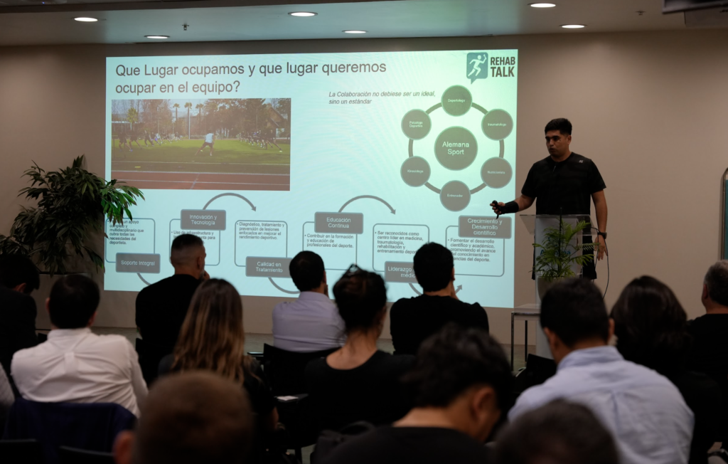 Desde la apertura del auditorio de Clínica Alemana La Dehesa, el ambiente estuvo marcado por una convicción compartida: la kinesiología del deporte y la actividad física necesita dialogar consigo misma, revisar sus prácticas, fortalecer su identidad y asumir un rol más activo dentro del ecosistema de la salud, el deporte y el movimiento humano. Rehab Talk no fue un seminario tradicional, sino una instancia donde cada expositor aportó su mirada desde la experiencia clínica, la gestión, la formación académica y el trabajo en terreno.